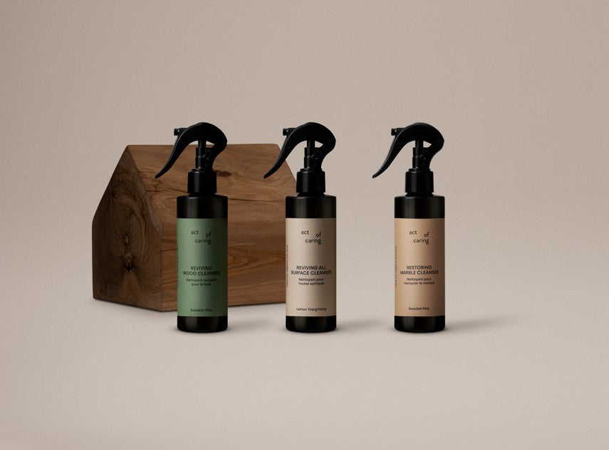 Act of Caring creates sustainable furniture and interior care products that extend the life of your belongings. The products are produced with the same philosophy as natural skin care. Their marble wax is so pure you can even use it on your skin – you could call it skin care for objects .